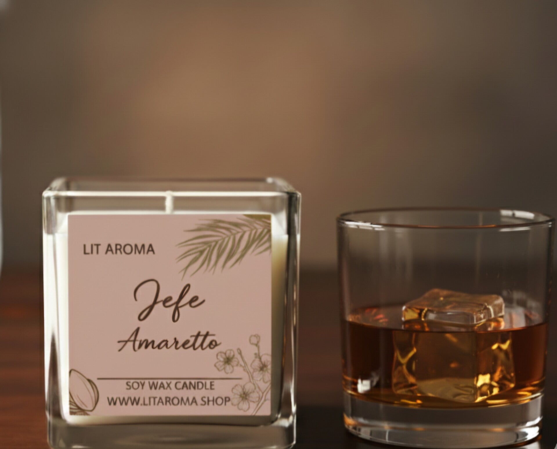 "Indulge in the sophisticated and luxurious scent of the Lit Aroma Jefe Amaretto Candle. Crafted with natural ingredients, this candle features the rich, nutty aroma of amaretto liqueur, complemented by subtle hints of vanilla and almond. Perfect for creating an elegant and relaxing atmosphere, whether you’re entertaining guests or enjoying a quiet evening. Elevate your space with Lit Aroma – where every scent is a touch of refinement."