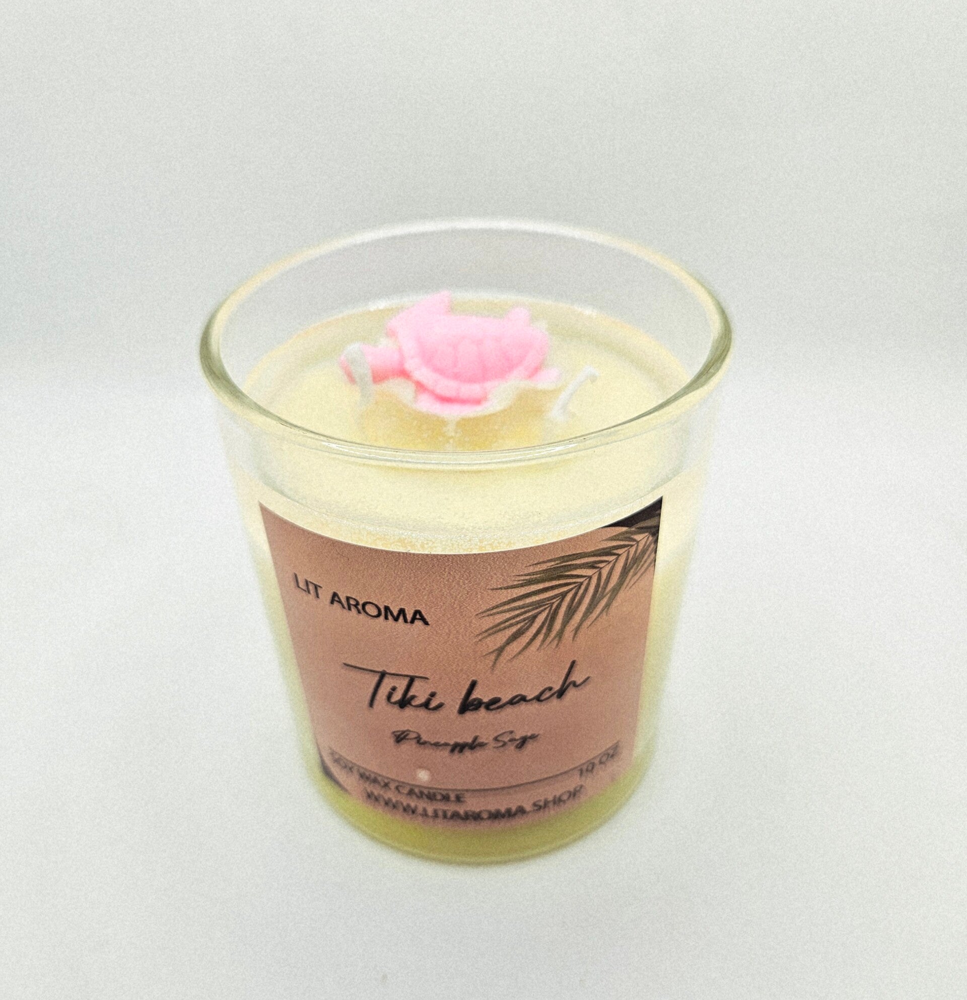 "Escape to paradise with the Lit Aroma Tiki Beach Candle in Pineapple Sage. Crafted with natural ingredients, this candle combines the sweet, tropical aroma of pineapple with the fresh, herbaceous notes of sage, evoking a sun-soaked beach getaway. Perfect for creating a vibrant and uplifting atmosphere, whether you’re daydreaming of tropical escapes or simply brightening up your space. Bring a touch of island bliss to your home with Lit Aroma – where every scent transports you to paradise."